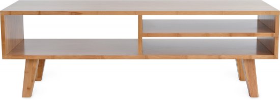The honey colour of the bamboo gives a very warm touch to your home decoration and will be perfect in a living room to showcase your television and some home accessories. The lacquering on the legs gives the unit a modern touch so that it will fit in really well with your existing furniture.